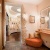 Лейтмотив пространства задается сразу, с порога: светлые стены с элементами декора из искусственного камня и плавные, мягкие линиипереходы, ведущие в большую и светлую гостиную. Много света, стена с отделкой из искусственного камня, плавные, закругленные углы мебели – все подчеркивает легкость и мягкость этого интерьера. Квартира, в которой нет острых углов. Квартира, в которой тропинки не только на полу, но и на потолке – в виде неординарного потолочного рельефа с мягкой, продуманной, струящейся подсветкой. Квартира, в которой зоны с особой нагрузкой – ванной комнаты, кухни – подняты на подиум. Квартира, в которой можно жить не только в этом году или в следующем, а интерьер которой не выйдет из моды и спустя 20 лет. Рабочая зона кухни поднята на подиум с подсветкой, а ярко красные барные стулья являются своеобразными акцентами в этом выдержанном в теплой гамме помещении. Большая, с окном, ванная комната кажется еще большей благодаря светлой отделке и приподнятой на подиум ванной – такое горизонтальное разделение пространства его визуально увеличивает. Этот же эффект получается благодаря подвесной сантехнике. Напольное покрытие из паркетной доски, коегде, без излишеств, – венецианская штукатурка, дорогая итальянская мебель – все это свидетельствует о том, что интерьер создавался не на несколько лет и все в нем продумано до мелочей и сделано очень качественно. Не обремененный деталями и ощутимо облегченный мудро продуманным светом интерьер кажется словно парящим над городом. И эта легкость, плавность и мягкость в сочетании с внутренней надежностью и стабильностью наделяют уверенностью – в этом доме хорошо. Было. Есть и будет.