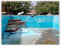 Реконструкция проводиться в бассейнах с бетонной чашей с такими видами покрытия как: лайнер, плитка, мозаика, краска.