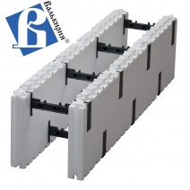 Разборной блок является новинкой для Украинского рынка. Состоит из двух пенополистирольных стенок (каждая по 50мм.), соединенных между собой регулируемыми полипропиленовыми (пластиковыми) перемычками. Используется как основной строительный блок в малоэтажном и многоэтажном строительстве. Благодаря своей уникальной конструкции, а именно малому поперечному сечению перемычек, достигается 100 % монолитность стены, что делает ее более прочной. Регулируемая перемычка дает возможность изменять толщину несущей (бетонной) части стены в диапазоне от 100 мм до 300 мм.